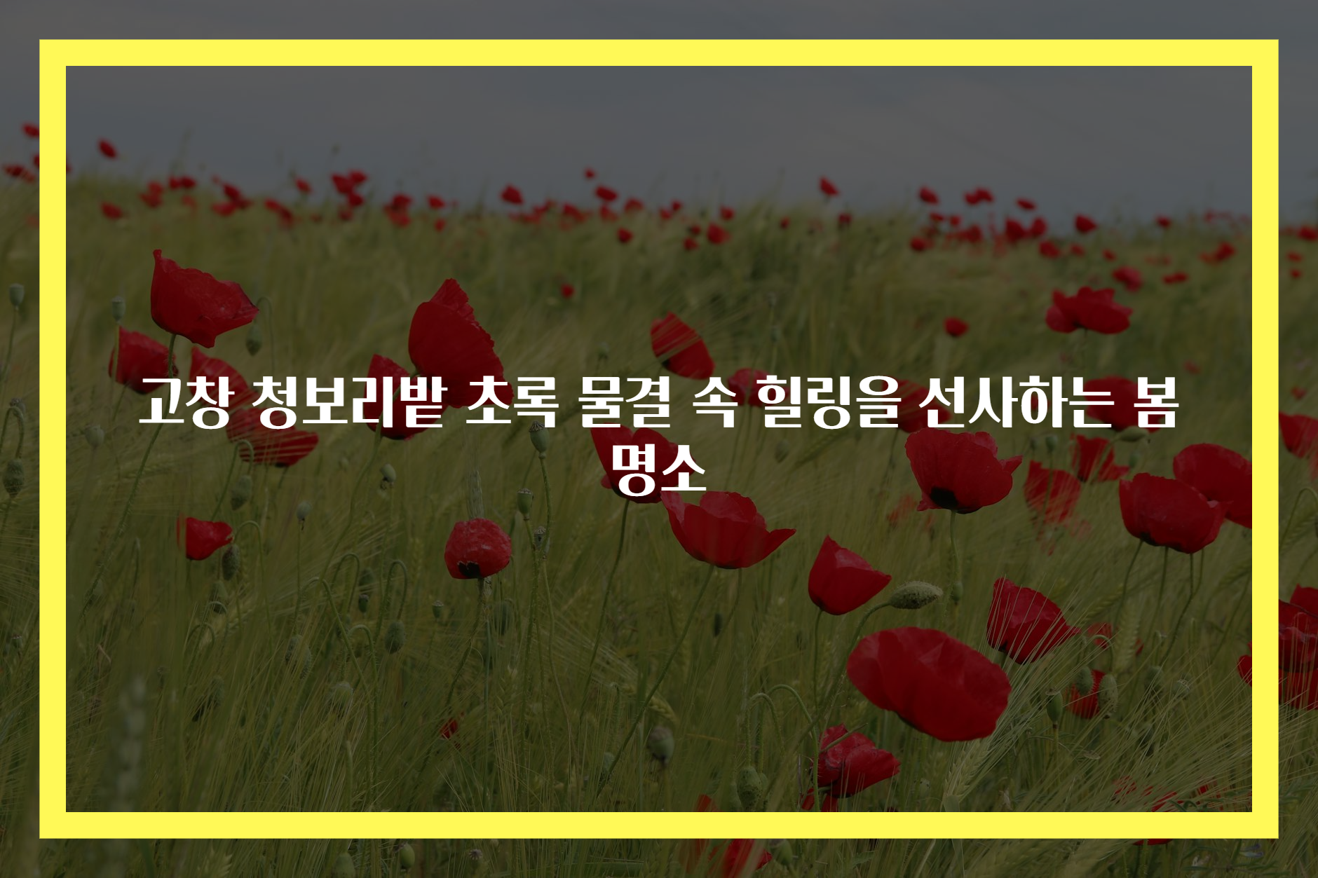 ๋ฉํ ์ค๋ช : ๊ณ ์ฐฝ ์ฒญ๋ณด๋ฆฌ๋ฐญ์ ์ด๋ก ๋ฌผ๊ฒฐ ์์์ ํ๋ง์ ๊ฒฝํํ ์ ์๋ ์๋ฆ๋ค์ด ๋ด ๋ช ์์ ๋๋ค. ๋ณด๋ฆฌ๋ฐญ์์ ์์ฐ๊ณผ ๊ต๊ฐํ๊ณ ํน๋ณํ ์๊ฐ์ ๋ง๋ค์ด ๋ณด์ธ์.