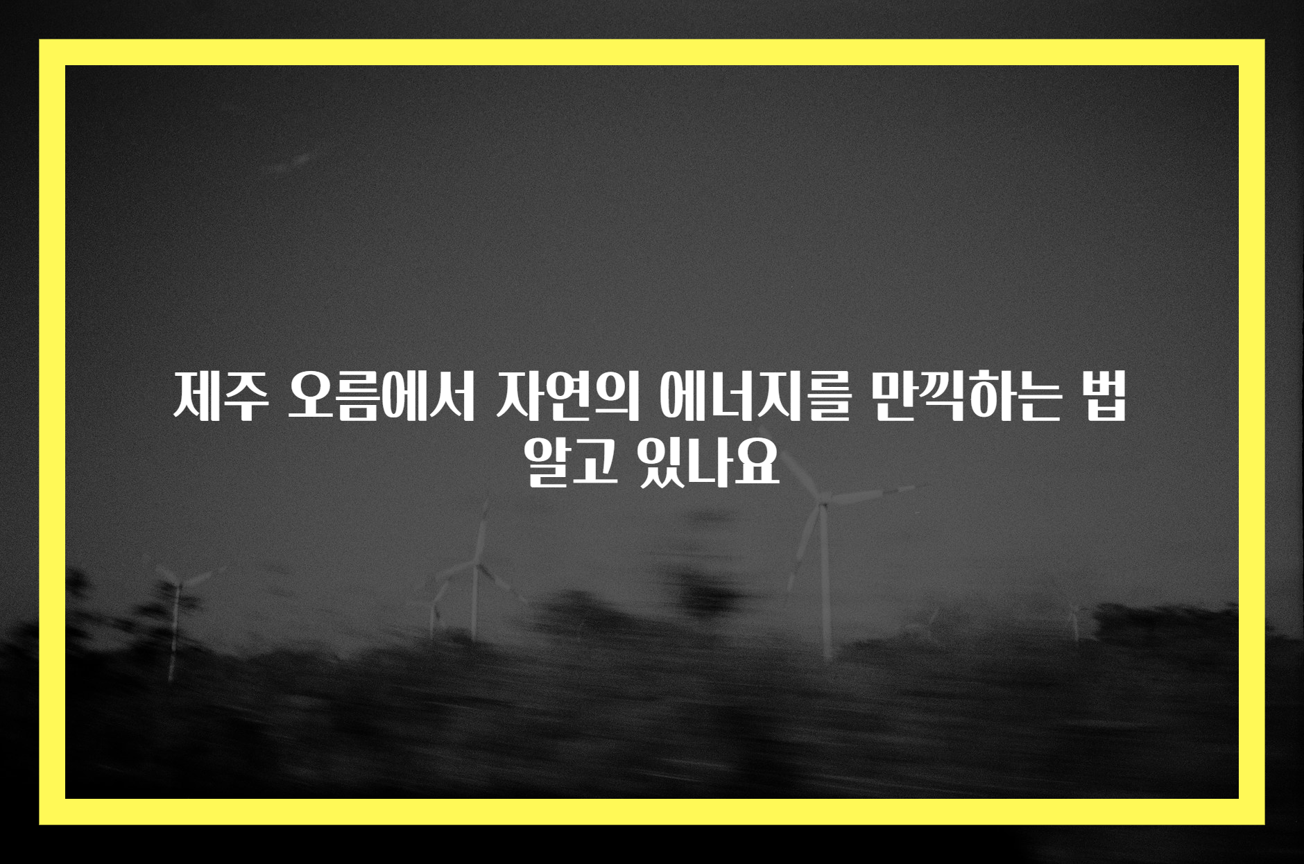 ์ ์ฃผ ์ค๋ฆ์์ ์์ฐ์ ์๋์ง๋ฅผ ๋ง๋ฝํ๋ ๋ฐฉ๋ฒ, ํ์ดํน๊ณผ ๋ฌธํ ์ฒดํ์ ํตํด ์ ์ฃผ๋ ์์ฐ์ ๋งค๋ ฅ์ ๋๊ปด๋ณด์ธ์!