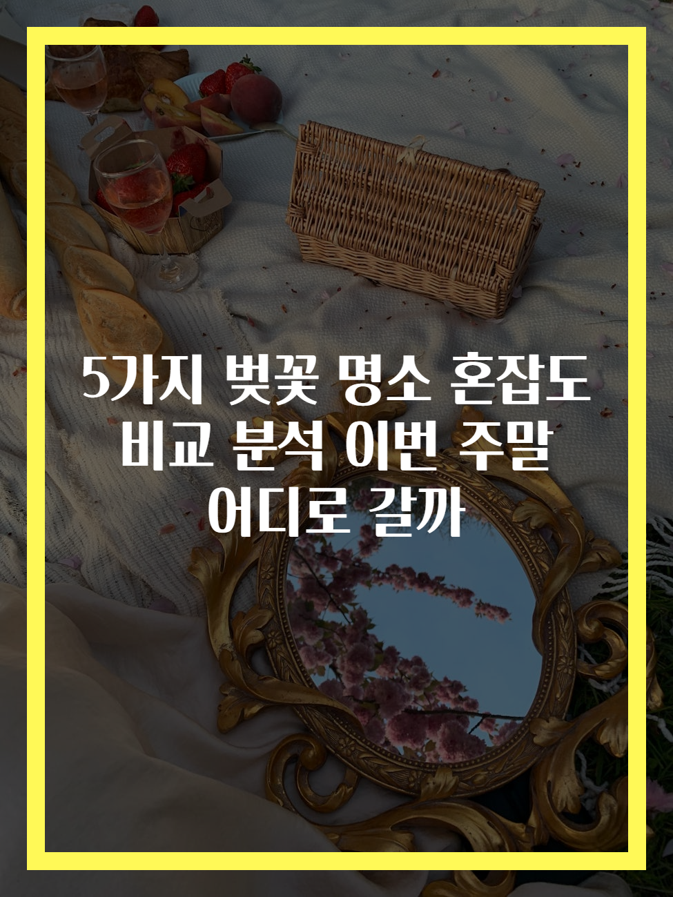 ๋ด์ ์์ง์ผ๋ก ์ฌ๊ฒจ์ง๋ ๋ฒ๊ฝ์ ๋งค๋ ๋ง์ ์ฌ๋๋ค์๊ฒ ์ฌ๋๋ฐ๋ ํน๋ณํ ์์ฆ์ ๋๋ค. ํ๊ตญ์ ์ฃผ์ ๋์ ๊ณณ๊ณณ์์ ์๋ฆ๋ค์ด ๋ฒ๊ฝ์ ๋ง๋ฝํ ์ ์๋ ๋ค์ํ ๋ช ์๋ค์ด ์กด์ฌํฉ๋๋ค. ํ์ง๋ง ์ด๋ฌํ ์ธ๊ธฐ ๋ช ์๋ค์ ๋ด์ด ๋๋ฉด ์๋ง์ ๊ด๋๊ฐ๋ค๋ก ๋ถ์ ์ด๊ธฐ ๋๋ฌธ์ ํผ์ก๋ ๋ฌธ์ ๋ ๊ณ ๋ คํด์ผ ํฉ๋๋ค. ์ด๋ฒ ์ฃผ๋ง ๋ฒ๊ฝ์ ์ฆ๊ธฐ๊ธฐ ์ํด ๋ฐฉ๋ฌธํ ๋งํ 5๊ฐ์ง ์ฃผ์ ๋ช ์๋ฅผ ์ ์ ํ์ฌ ๊ฐ๊ฐ์ ํผ์ก๋๋ฅผ ๋น๊ต ๋ถ์ํด ๋ณด๊ฒ ์ต๋๋ค.