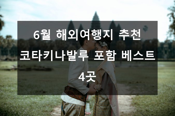 ์๋ ํ์ธ์, ์ฌํ์ ์ฌ๋ํ๋ ์ฌ๋ฌ๋ถ! ํน์ 6์์ ์ด๋๋ก ๋ ๋ ์ง ๊ณ ๋ฏผ ์ค์ด์ ๊ฐ์? ๐ค ์์ฆ ๊ฐ์ ์๊ธฐ์๋ ๋ ์จ๋ ์ข๊ณ , ํด๊ฐ ๊ณํ ์ธ์ฐ๊ธฐ์ ๋ฑ ์ข์ ๋๋ผ์ ์ฌํ์ง ์ ํ์ด ์ฝ์ง ์์ฃ . ๊ทธ๋์ ์ค๋์ ์ฝํํค๋๋ฐ๋ฃจ๋ฅผ ํฌํจํ 6์ ํด์ธ์ฌํ ๋ฒ ์คํธ 4๊ณณ์ ๊ผผ๊ผผํ ์๊ฐํด๋๋ฆฌ๋ ค๊ณ ํด์! ๐งณ๐
