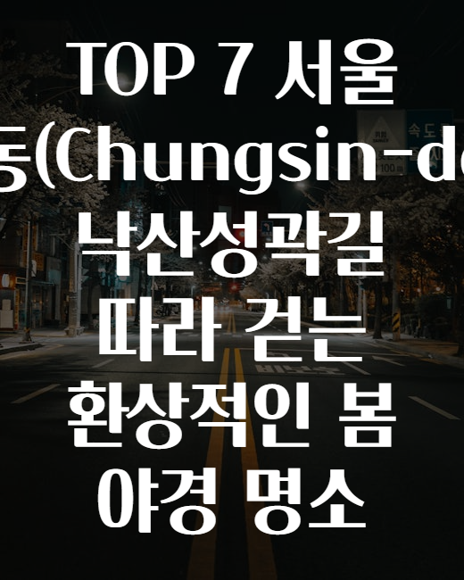 ์๋ ํ์ธ์, ์ฌ๋ฌ๋ถ! ํน์ ์์ธ์์ ๋ด ๋ฐค์ ์ด๋๋ก ์ฐ์ฑ ํ๋ฌ ๊ฐ์ผ ํ ์ง ๊ณ ๋ฏผ ์ค์ด์ ๊ฐ์? ๐ท๐ง ์์ธ ๋์ฌ ์์์ ์์ฐ๊ณผ ์ญ์ฌ๊ฐ ์ด์ฐ๋ฌ์ง ๋์ฐ์ฑ๊ณฝ๊ธธ์ ๊ฑธ์ผ๋ฉฐ ๋ฉ์ง ์ผ๊ฒฝ์ ์ฆ๊ธฐ๋ ๋ฐฉ๋ฒ, ์๊ณ ์ถ์ง ์์ผ์ธ์? ์ค๋์ ์์ธ ์ถฉ์ ๋(Chungsin-dong)์์ ๋์ฐ์ฑ๊ณฝ๊ธธ์ ๋ฐ๋ผ ๊ฑท๋ ์ต๊ณ ์ ๋ด ์ผ๊ฒฝ ๋ช ์ TOP 7์ ์๊ฐํด ๋๋ฆด๊ฒ์! ๐๏ธโจ